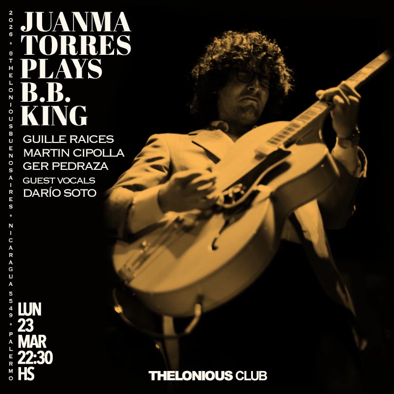 La cita será en Thelonius Club, 22:30hs. Las entradas pueden adquirirse a través de este link: https://www.entradasonline.com.ar/show/juanma-torres-plays-bb-king-23-mar-2026-2230hs