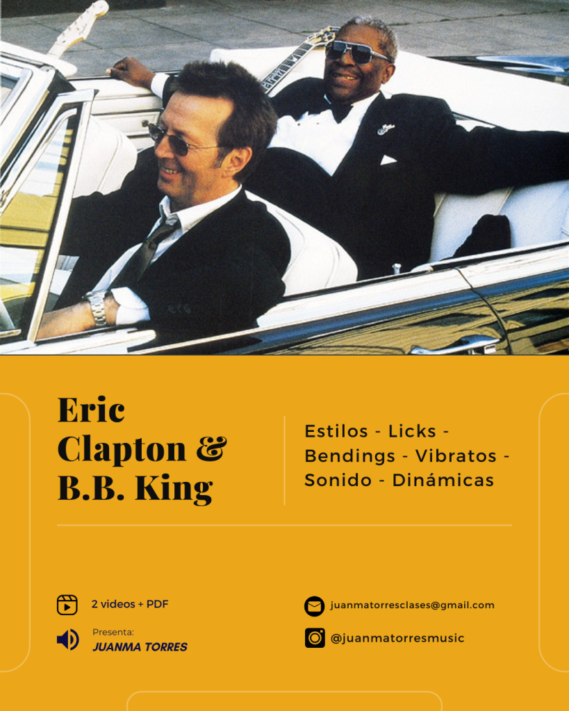 En esta clase hablamos de ideas básicas del vocabulario de Eric Clapton y B.B. King con algunos motivos melódicos (yeites) caracteristicos para que puedas armar un solo en el estilo de ellos cuando gustes.